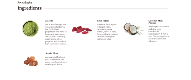This Rose Matcha is filled with nutrients. Like our traditional CBD matcha, it’s rich in catechins, a plant compound that acts as a natural antioxidants. In addition, the rose petals add vitamins A and C, riboflavin and niacin, as well as minerals such as calcium, phosphorous, iron and potassium. Because we only use organic rose petals, delicately ground into a fine powder, our Rose Matcha retains a great concentration of the nutrients found in whole rose.