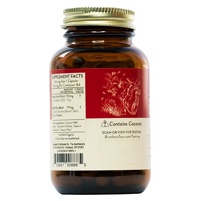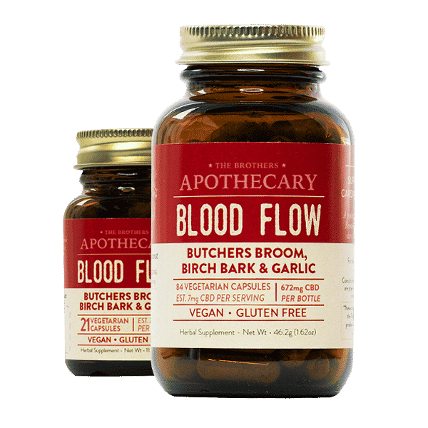 Blood Flow is formulated to support healthy veins, a healthy heart, and healthy blood flow. These capsules are made with simple ingredients, including organic, locally sourced high-CBD hemp flower, Garlic, Butcher’s Broom, and Birch Bark, each of which have been used for centuries in herbal medicine.
