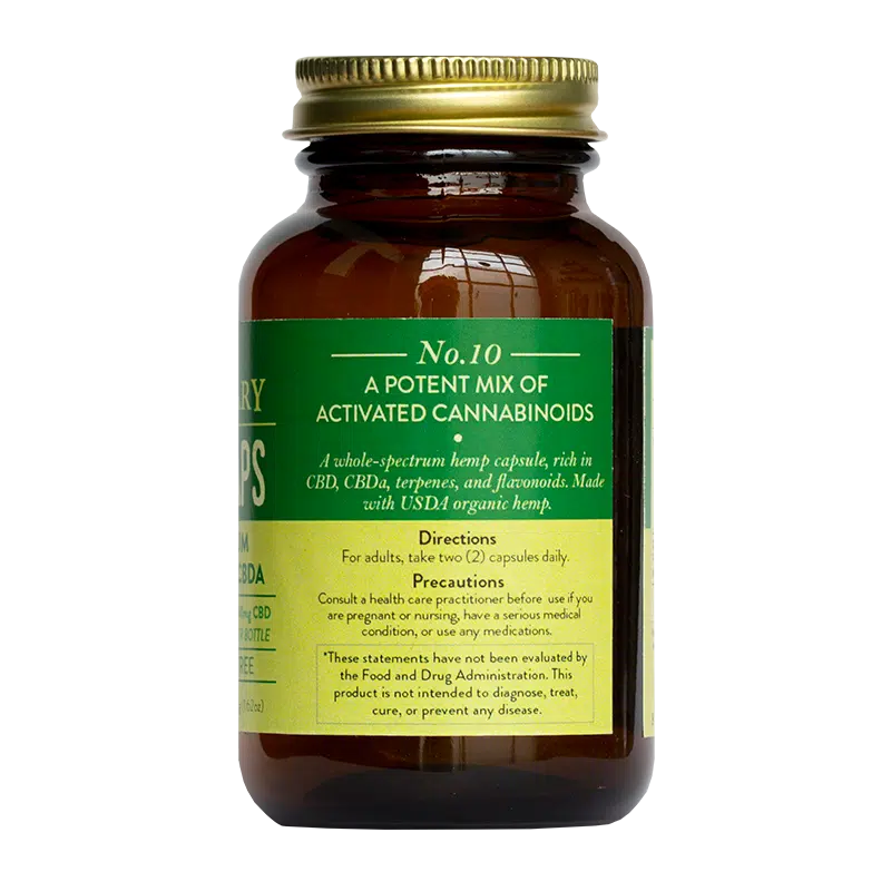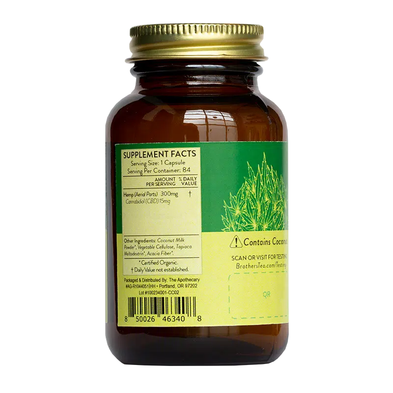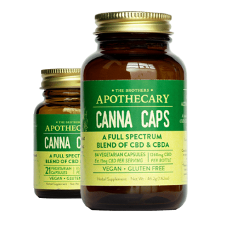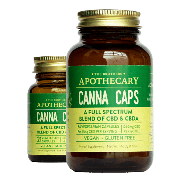 Canna Caps are The Brothers Apothecary’s first 100% hemp based CBD capsule. These are made with US-grown hemp, sourced from a USDA organic farm in Oregon that utilizes biodynamic and sustainable farming practices. Unlike capsules that use isolate or solvent-blasted hemp flower, the base of these capsules begin with unadulterated hemp material. This is for good reason: processes used in isolating or extracting for CBD may strip the material of other important plant compounds. This includes other cannabinoids, as well as compounds known as “secondary plant metabolites” which are numerous in cannabis plants. In fact, a 2020 study showed cannabis includes over 100 terpenoids, 26 flavonoids, and at least 104 cannabinoids!