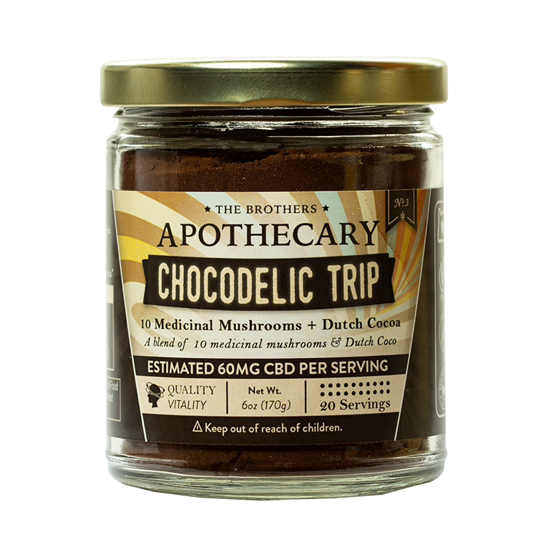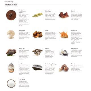 Chocodelic Trip is a very unique CBD hot cocoa. Using a series of health-focused ingredients, including an adaptogenic blend of 10 synergistic mushrooms, this cocoa is crafted to be both delicious & healthy. Our mushrooms are carefully selected for their support of a healthy immune system, making this way more unique than your average cocoa. The Dutch Cocoa used also contains high amounts of Vitamin B, riboflavin and vitamin K. This cocoa also contains minerals like magnesium, potassium, and zinc.