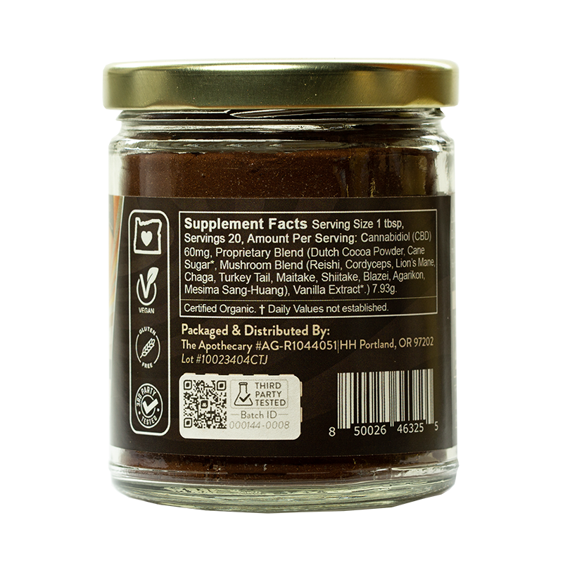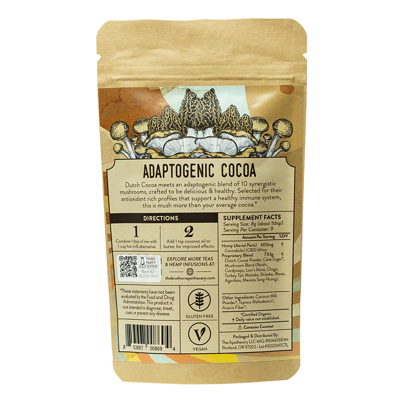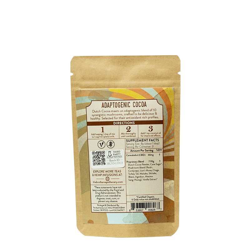 Our Adaptogenic CBD Hot Cocoa goes beyond the ordinary. It is a thoughtfully crafted fusion of Dutch Cocoa and a blend of 10 adaptogenic mushrooms, each selected for their unique anti-aging, immunity-boosting, and antioxidant-rich properties*. These adaptogens have been used across the globe for centuries to address a variety of ailments, with ongoing research highlighting the potential benefits of their polysaccharides*.