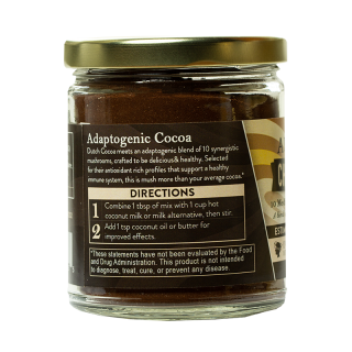 Chocodelic Trip tastes similar to traditional dark chocolate cocoa, with a deeper finish from the array of unique mushrooms included. We use a dark Dutch Cocoa in this recipe, as well as real Madagascar vanilla bean powder + organic cane sugar (one of our few recipes with cane sugar!). While the Dutch Cocoa is a darker, more astringent version than lighter milk chocolates, the vanilla bean and cane sugar bring a familiar sweet flavor dynamic, making this more of a semi-bitter cocoa vs. a true dark chocolate. Chocodelic Trip is the #1 adult hot cocoa.