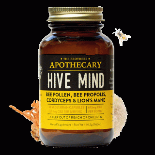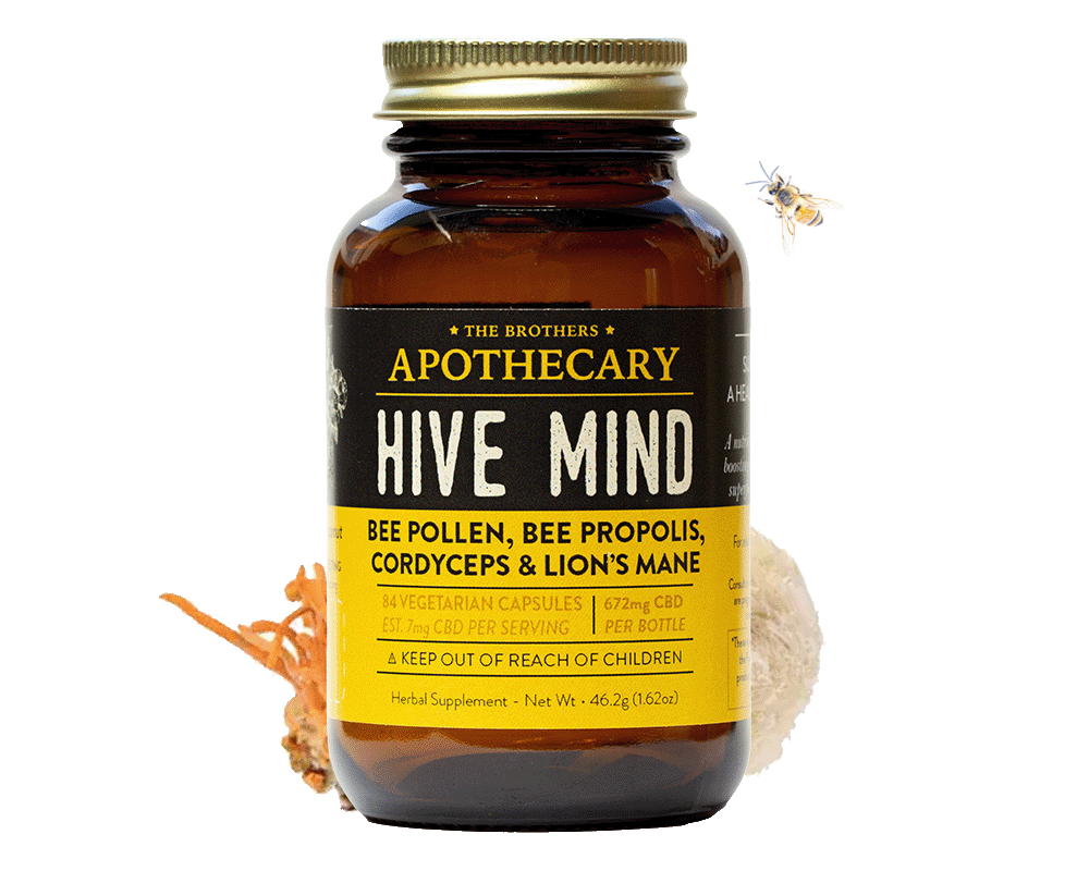 Introducing Hive Mind by The Brothers Apothecary – a CBD capsule infused with the potent goodness of bee pollen, bee propolis, and mushrooms. Crafted to optimize your body and mind, this unique blend combines the nourishing properties of nature’s finest ingredients.