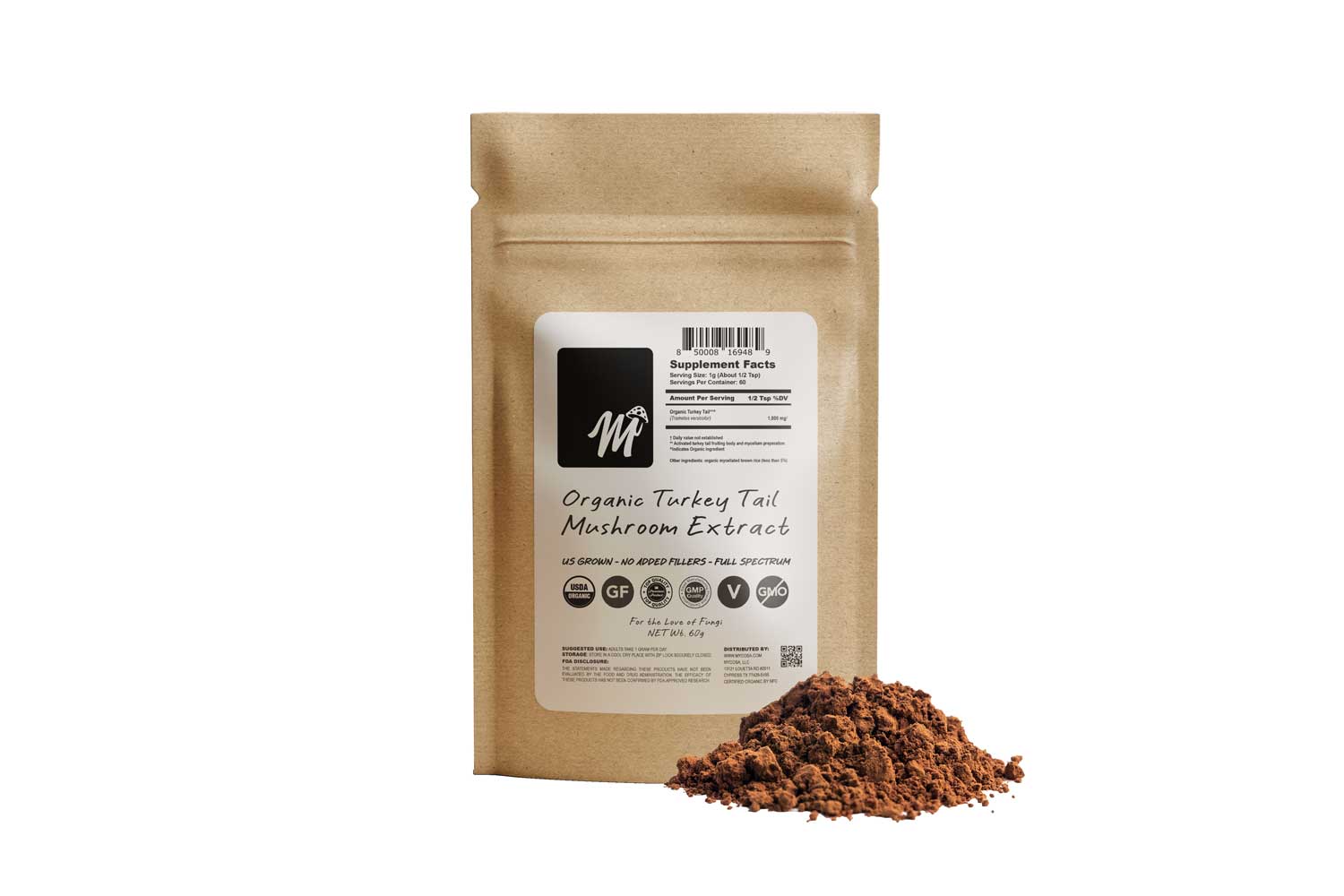 o A pure blend of Organic Turkey Tail and mycelium*