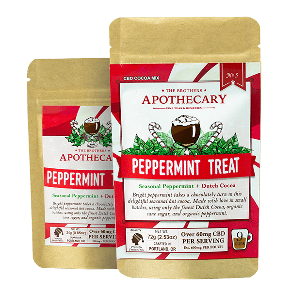Dark Dutch Cocoa meets bright peppermint in this seasonally-sweet chocolatey elixir. Let’s be honest: nothing says ‘holiday season’ quite like hot cocoa with peppermint. Made in small-batches & infused with 60mg+ CBD per serving, The Brothers Peppermint Treat is a delicious take on the CBD hot cocoa. It’s rich, sweet, and made with natural peppermint extract for a refreshing taste sourced from real peppermint (not something synthetic!).